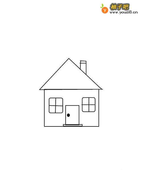 4接下来继续画出正方形的窗户,把门和左右窗画好,窗子内可以画一个十字哦。