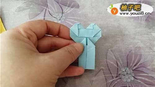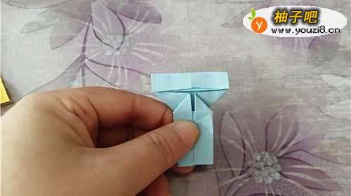 5把内侧的两个角向下折,再把上面的小角向下折,如图一。其他的彩纸按照上边的步骤操作,如图二。
