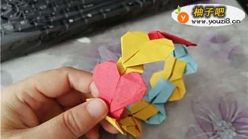 如何用纸折爱心花环