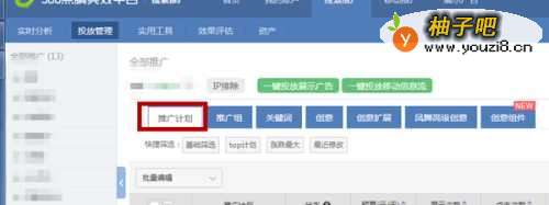 4第四步:进入“推广计划“,在点击“投放管理“后,在下方我们可以看到一系列操作。例如:推广计划、推广组、关键词、创意、创意扩展、凤舞高级创意、创意组件等。点击“推广计划”,如下图所示: