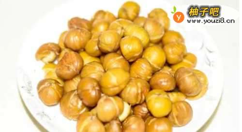 2(2)市场有买好的去壳的板栗,回家用开水泡5-8分钟就可以很简单的把板栗里面那层膜去掉了。