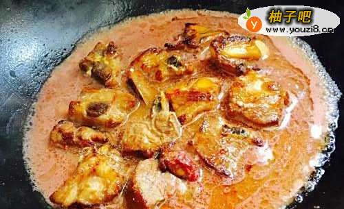 6中火焖煮10分钟后转大火翻炒,收干汤汁即可。