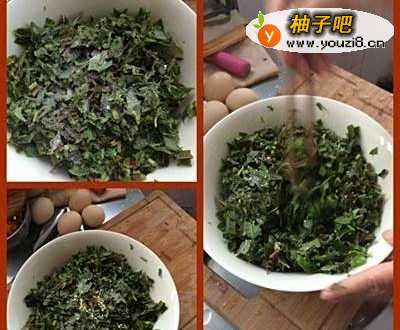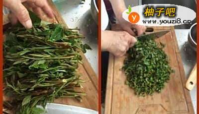 2香椿芽清洗控水以后,就切成0.5厘米的小段。短一些,吃起来更入味。