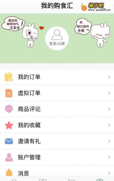 2第二步,进入移动端“购食汇”图标,点击“我的商城”注册。