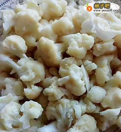 准备一个新鲜的花椰菜,刷子刷干净,切成小块。