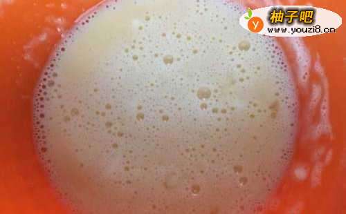 5第五步,把面糊里放一点糖,调匀,再把切好的香蕉放进去。