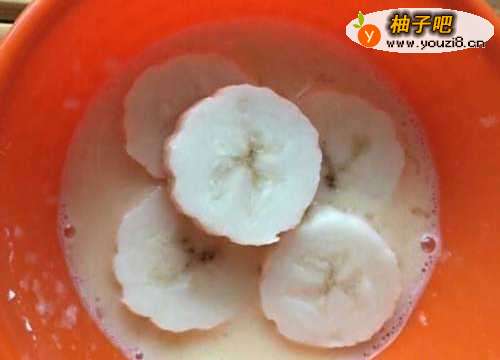 4第四步,把香蕉切成厚一点互随悦儿的片备用。