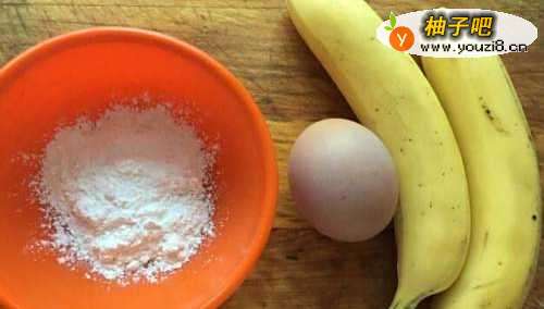 第一步,裕铲准备材料,要一个鸡蛋,两根香蕉,适量的淀粉。