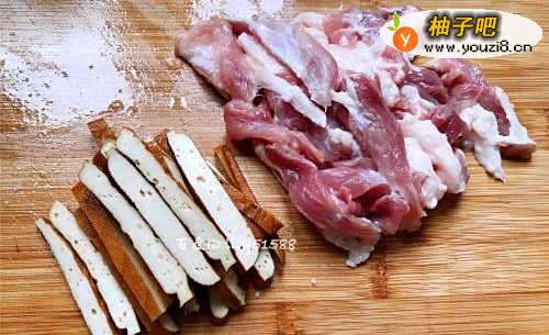 2把香干和瘦肉洗干净,把瘦肉切成肉丝,豆干切条,备用。