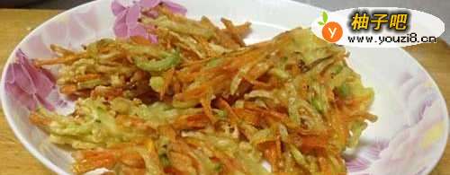 5锅中烧好热油,用筷子夹一筷子的萝卜丝放入锅中,先开大火使萝卜丝均匀粘到一起,然后转小火慢慢炸,使萝卜丝熟透,然后转大火炸至萝卜丝表面金黄,即可捞出食用。先尝尝味道,如果缺少哪种味道可再适量添加佐料后再炸,然后按照上述步骤,将盆中的萝卜丝炸完,即可食用。