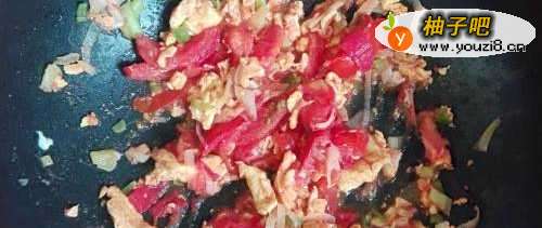 7当炒的变色时,加入适量的盐和调味品。