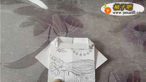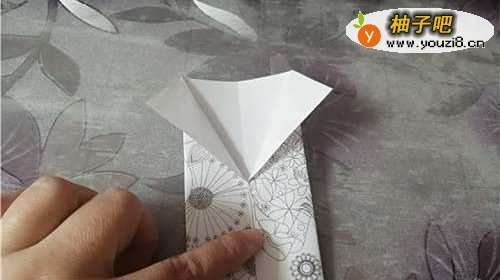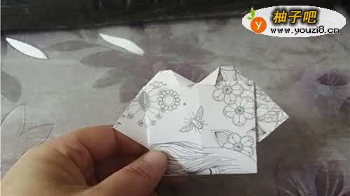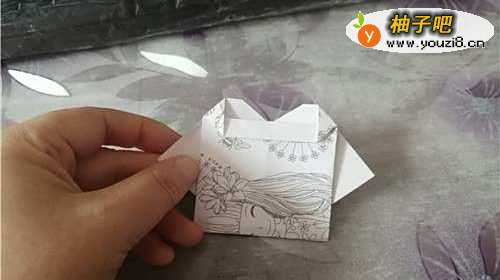 6翻到背面,把中间的两个角向下折,如图一。图二是完成图。