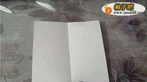 准备好正方形的彩纸,然后把彩纸的中线对折,如图一。再把两侧的边向着折痕对折,如图二。