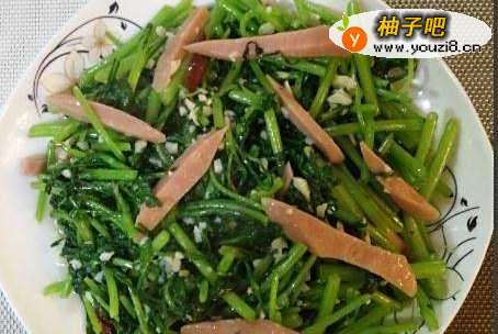 然后加入茼蒿翻炒,快速炒不然绿叶菜容易出水