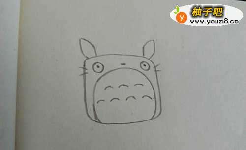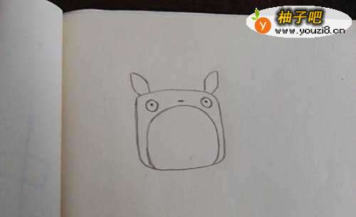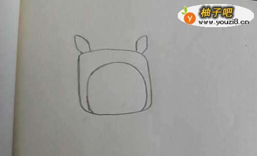2先在纸上画上一个方块,在方块的上方两侧画上两只耳朵,如图。