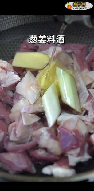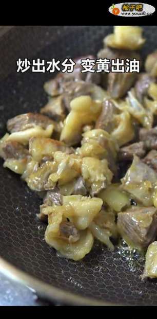 4锅里菜籽油烧热,倒入牛腩,炒出水分,变黄出油,加一点白酒去腥