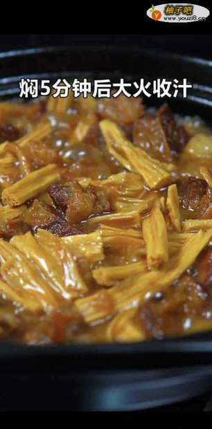 9继续焖5分钟后大火收汁,起锅前下点青红椒,美味即成