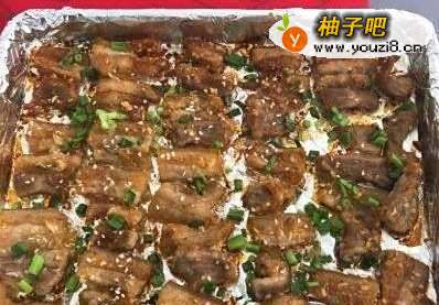 烤盘垫锡纸,铺上肉,上下火200度烤20分钟。