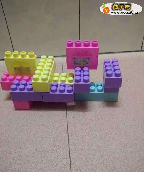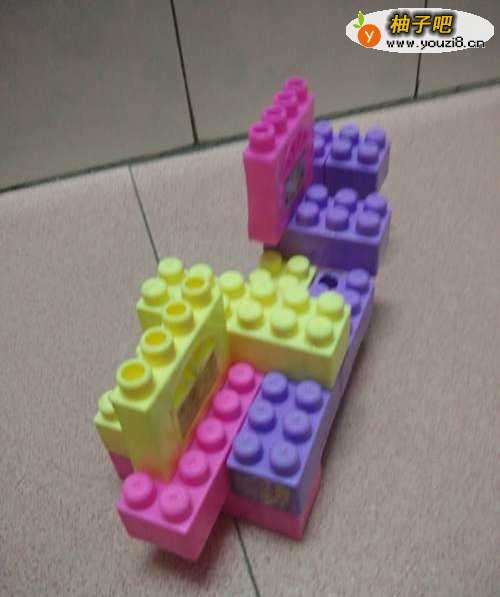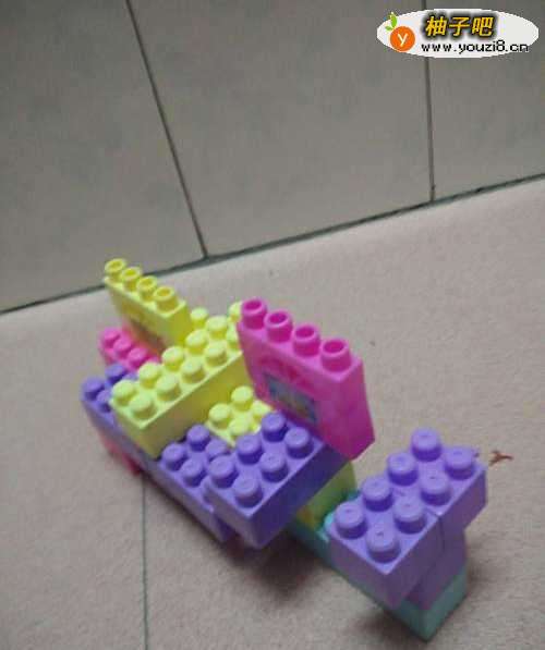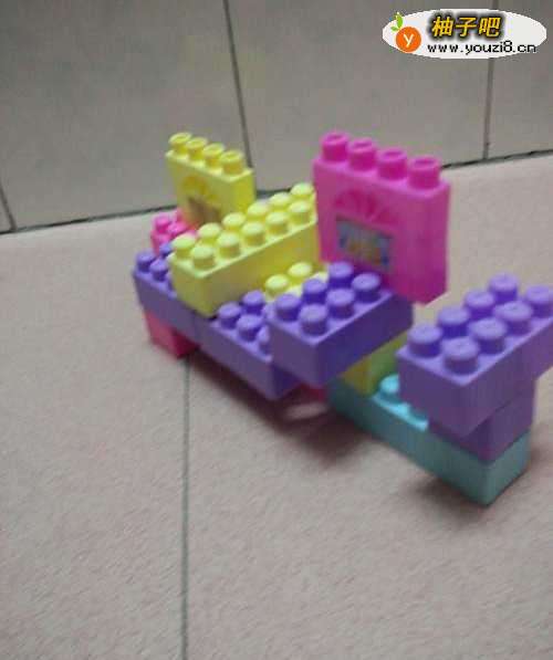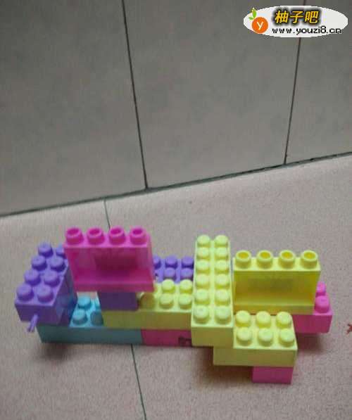 6用1块积木拼接成潜水艇的救生装置。瞧,一架美丽可爱的幼儿手工积木豪华潜水艇就做成了。孩子的杰作哦。真不可思议呀。