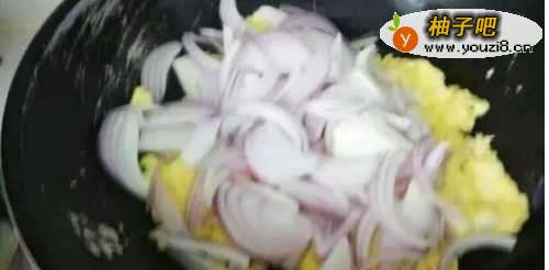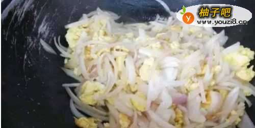 1.准备好所需要的食材,锅内烧油,放入打散的鸡蛋翻炒。2.然后放入切好的洋葱,接着放入蚝油。翻炒均匀。3.放入盐和味精,翻炒均匀,大火翻炒几下,盛出装盘。