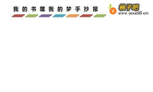 首先,用彩笔在白纸上,画出含有立体感小长方形框架并涂上颜色,在白纸的顶部靠左写上字:【我的书屋我的梦手抄报】的标题,如下图所示。