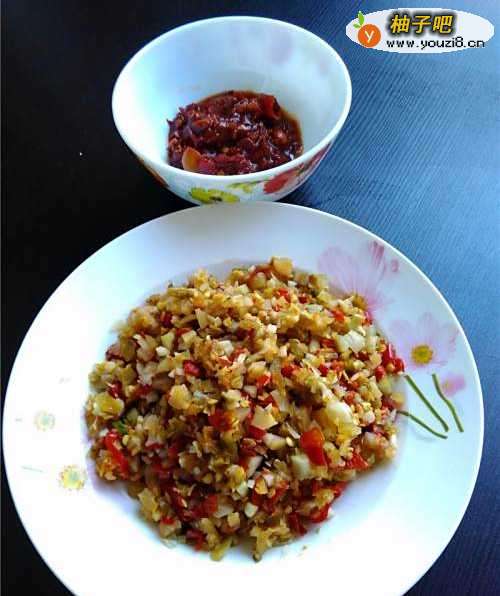 4备好豆瓣酱;泡椒,泡姜,泡菜洗净剁碎。