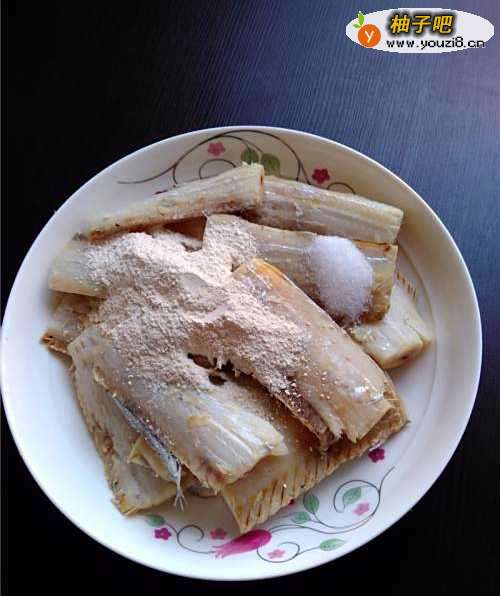 5带鱼用适量盐、干淀粉抓匀,腌制片刻。