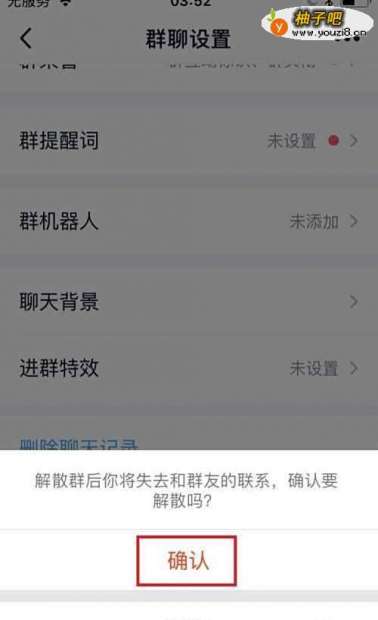 5在弹出的选择框中,点击“确认”,即可解散群聊。