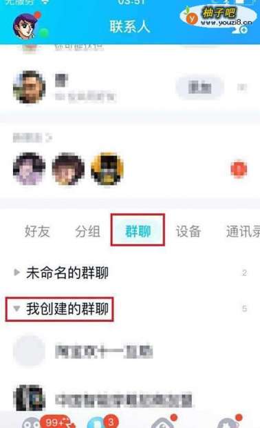2在“联系人”页面,点击“群聊—我创建的群聊”。选择您要解散的群并点击进入。