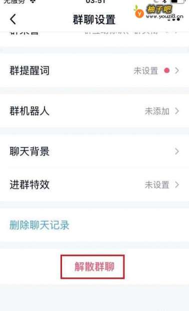 4滑动“群聊设置”页面到最底部,点击“解散群聊”。