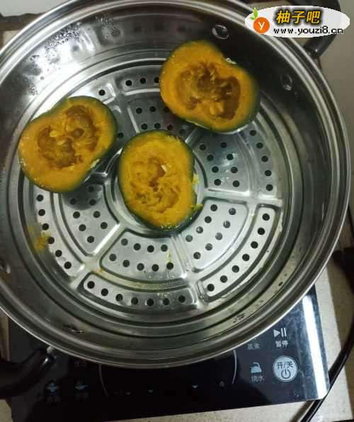 5时间到之后关火,打开盖子就可以看到美味的南瓜已经蒸好了。