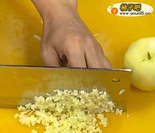 苹果去皮,然后切成小丁。