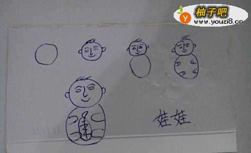 4第四张、小娃娃、平着自己的想象、因为我女人天天让我画小宝宝,我是真心不回画了,所以、下面的图是我自己想象的结果、就是有圆圆胖胖的脑袋和身子、在简单的加上胳膊腿、然后在大肚子上面放个简易的奶瓶、这样,是不是就有小宝贝的模样了呢、不要见笑喔