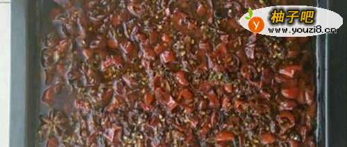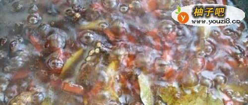 5然后,在锅中加入菜籽油,等油热之后,把葱姜蒜加入爆香,之后加入适量的牛油粒,等化了之后再把切碎的朝天椒和干红辣椒炒,加入适量的水,直到辣味扑鼻。