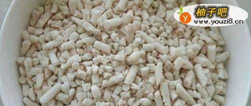 2接下来,准备好牛油粒。(我喜欢在麻辣烫的底料里面加入牛油,这样比较香,更好吃)如下图。