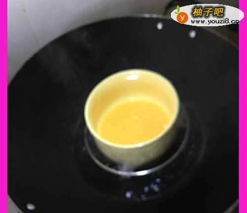 5在锅里放些冷水,开大火把水煮开后,把碗放在锅里,开小火,然后盖锅。