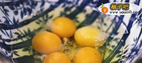 2然后,在碗中磕入5个鸡蛋打散,放入一点食盐、柠檬汁;