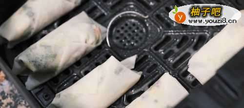 6最后,将包好的春卷放入空气炸锅中,然后再喷点油,200度烤10分钟就OK了。
