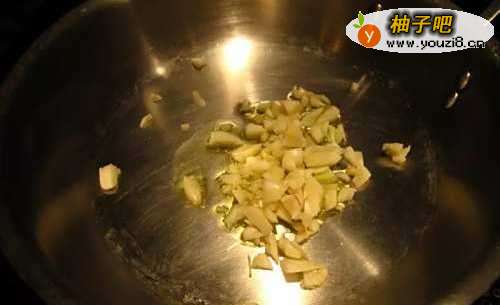 3等到大蒜吸饱了油,带着较深的黄色之时,将蘑菇下锅,洒点盐和黑胡椒