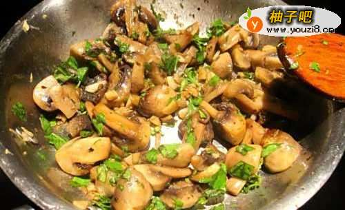 6蘑菇吸饱汤汁和蒜香,最后撒上切碎的香叶,拌匀就可以了