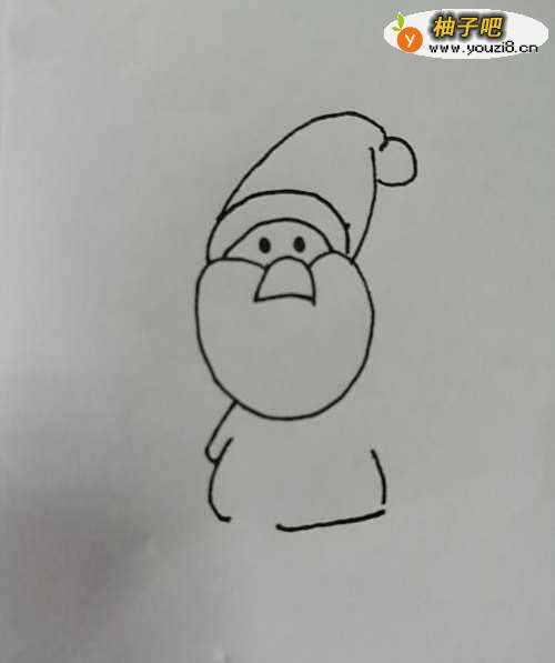 2第二步,接着圣诞老爷爷的鼻子画出圣诞老躲阅爷爷的胡须部分。
