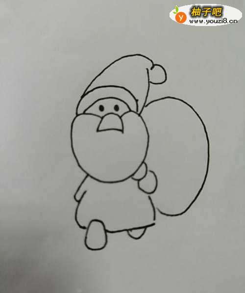 6第六步,最后把圣诞老爷爷的后面的礼物袋画出来。慈祥的圣诞老爷爷就画好了。