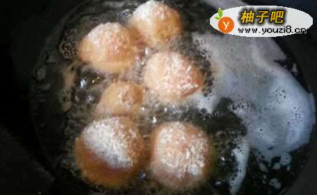 6最后就是炸肉丸啦,这一步很简单,等到肉丸表面转变成金黄,就可以出锅啦,刚炸好的芝士肉丸,味道更加酥脆噢。