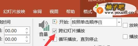 找到跨幻灯片播放,将其勾选即可