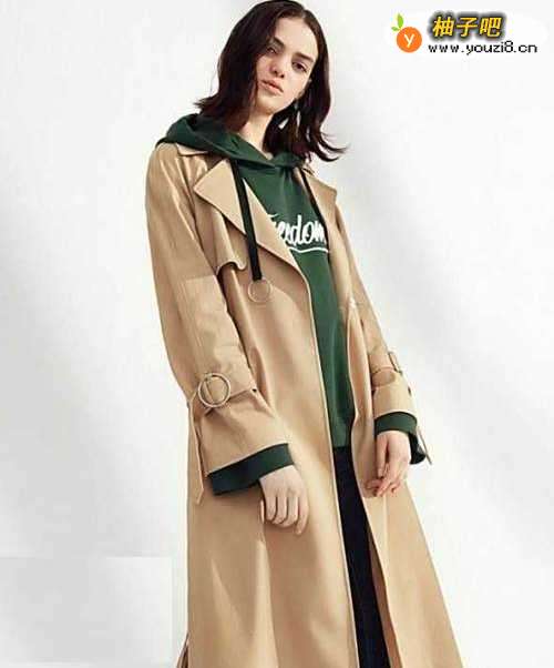 搭配四:卡其色长风衣+红色连帽卫衣+牛仔裤对于卫衣,大部分女生都有几分搭配心得,连帽卫衣搭配大衣、风衣都很时髦,卡其色长风衣搭配红色连帽卫衣,再搭配一条牛仔裤,是很时尚、减龄的搭配。