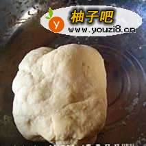 盆里倒入半杯面粉,加入适量水,和成面团;