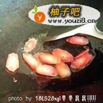 3热锅里倒入适量油烧热,将胡萝卜片放进锅里煸炒;