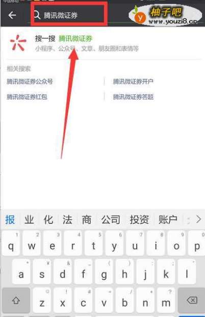 2然后在这个“搜索”的功能里面搜索“腾讯微证券”,然后点击后面的查询就可以出来相应的选择。