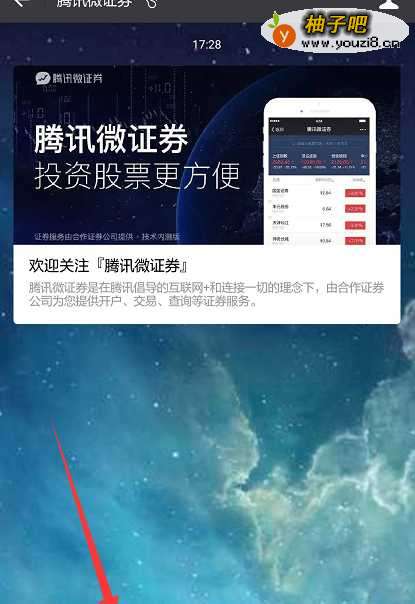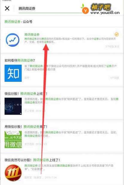 3搜索“腾讯微证券”以后会出现一个公众号,点击进入这个“公众号”的页面然后进行关注即可。