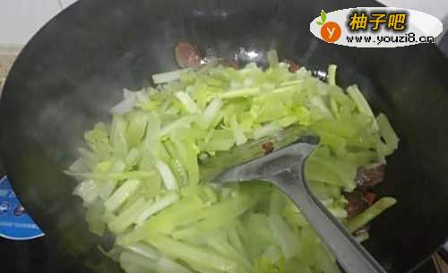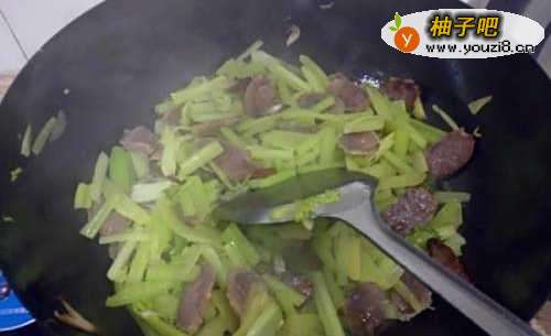 5之后就可以把切好的芹菜放入锅中翻炒了。